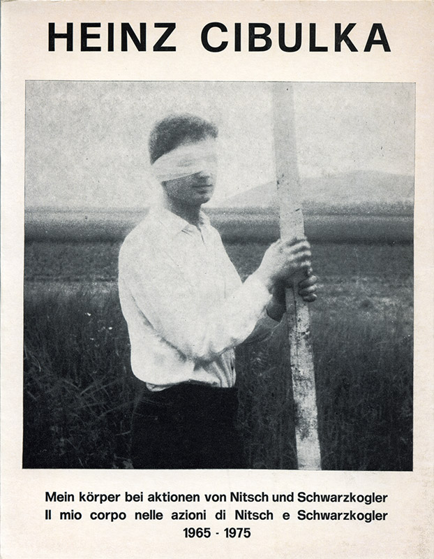 Heinz Cibulka lernte Hermann Nitsch Mitte der 1960er Jahre über die Vermittlung seines Schulfreundes Rudolf Schwarzkogler kennen und geriet so mitten ins Zentrum der damals jungen Gruppe der „Wiener Aktionisten“. Die Freundschaft mit den beiden Künstlern war für Cibulkas weiteres Leben in mehrfacher Hinsicht von entscheidender Bedeutung. Einerseits ermöglichte ihm deren radikaler Anspruch, „rascher an mir interessant erscheidende Kernprobleme der Kunst zu gelangen“ (Cibulka), andererseits wurde er zum wichtigsten und manchmal einzigen Modell für Schwarzkoglers und Nitschs fotografische Inszenierungen. zu den Bildern | view images